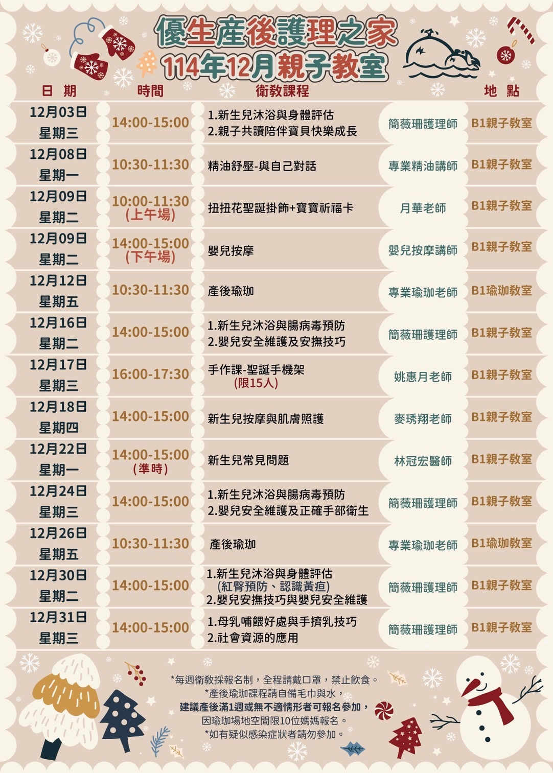 12月份親子教室課表