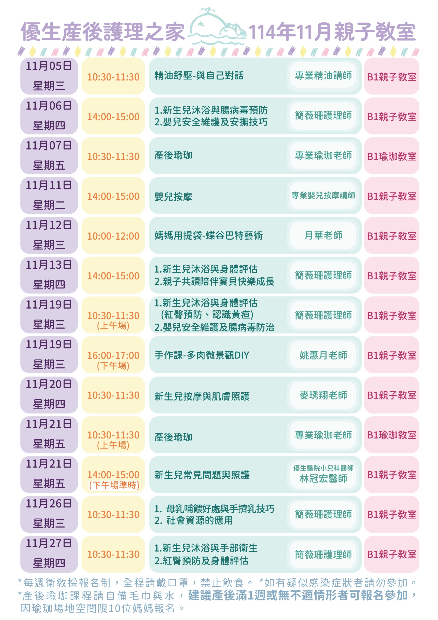 11月份親子教室課表